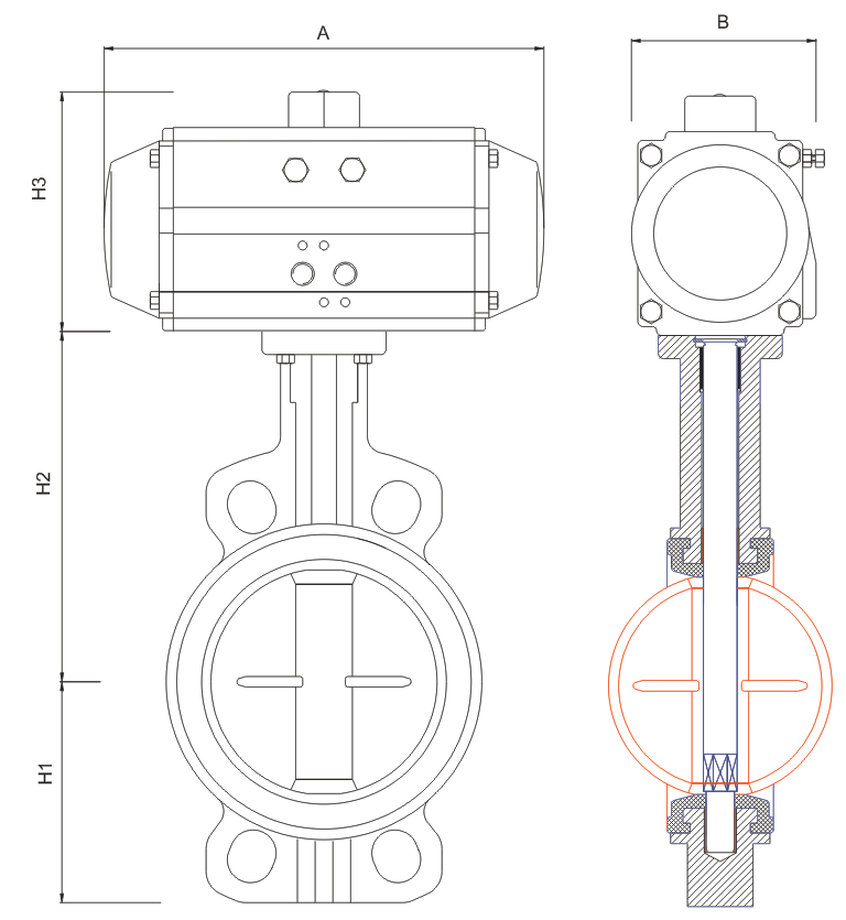 (氣動蝶閥的附件主要有:電磁閥,定位器、增壓閥、保位閥、減壓閥、過濾器、油霧器、位置反饋器、離合式手操機(jī)構(gòu)。